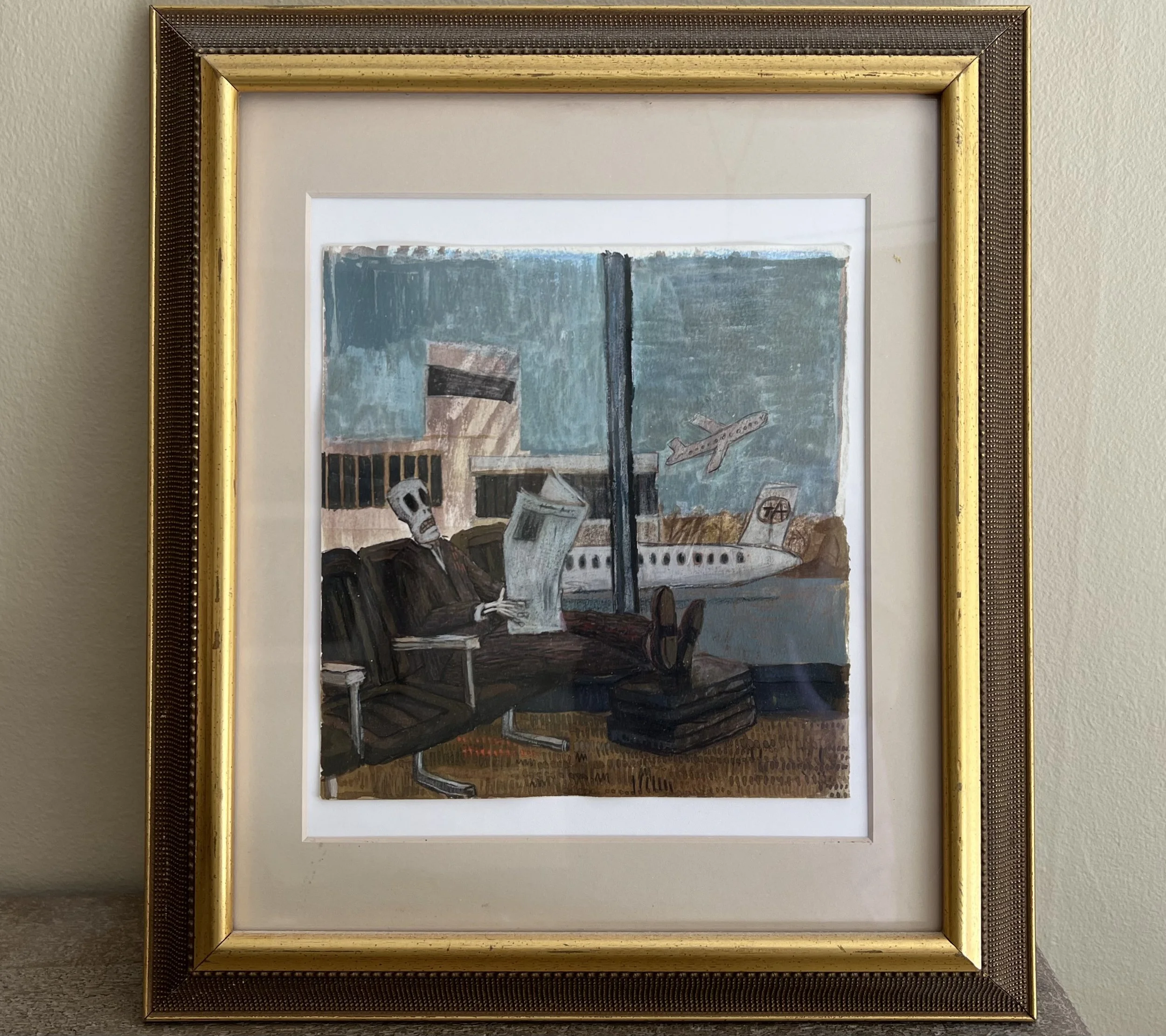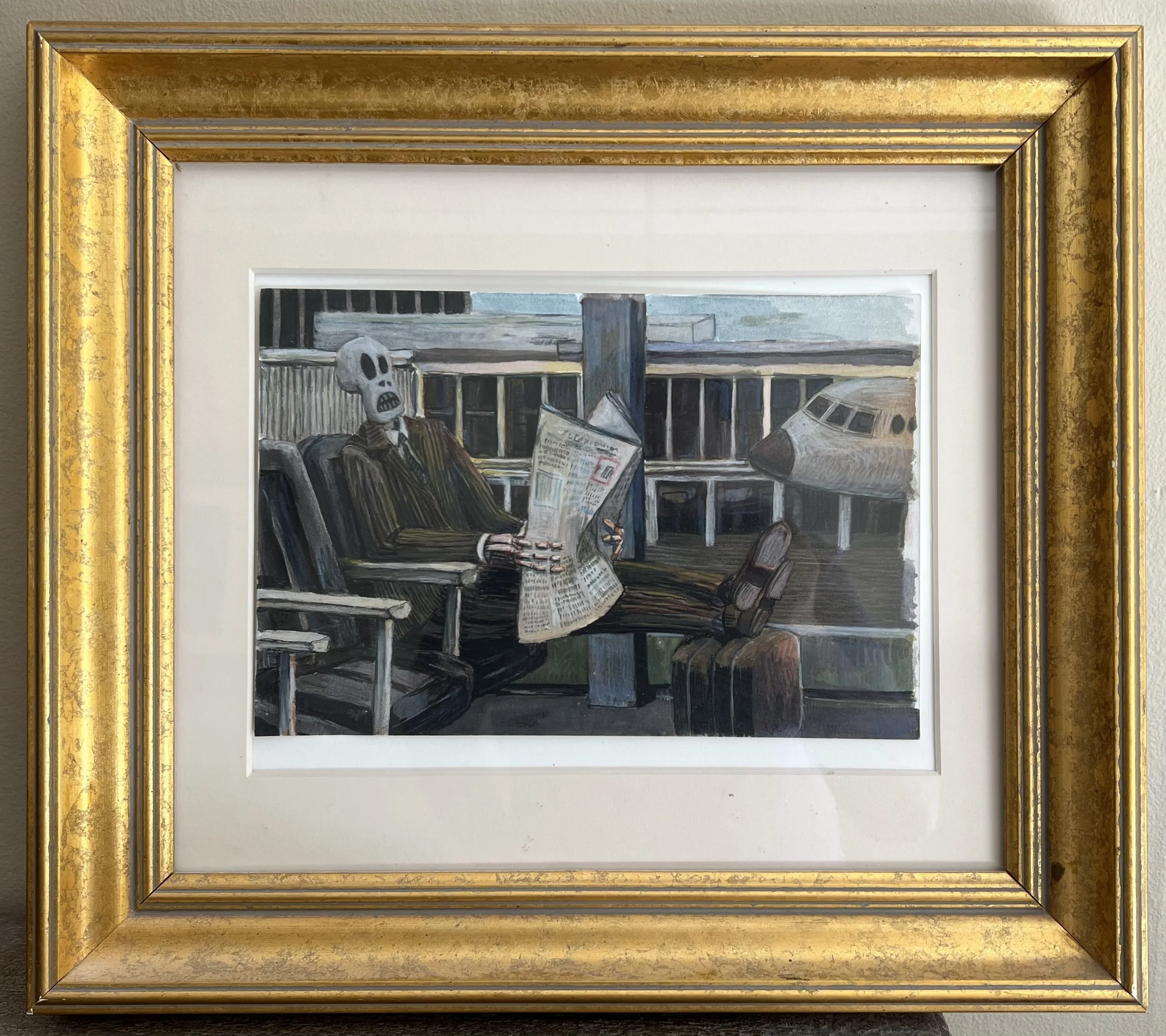 Death at Airport, pencil and watercolor on paper 2013