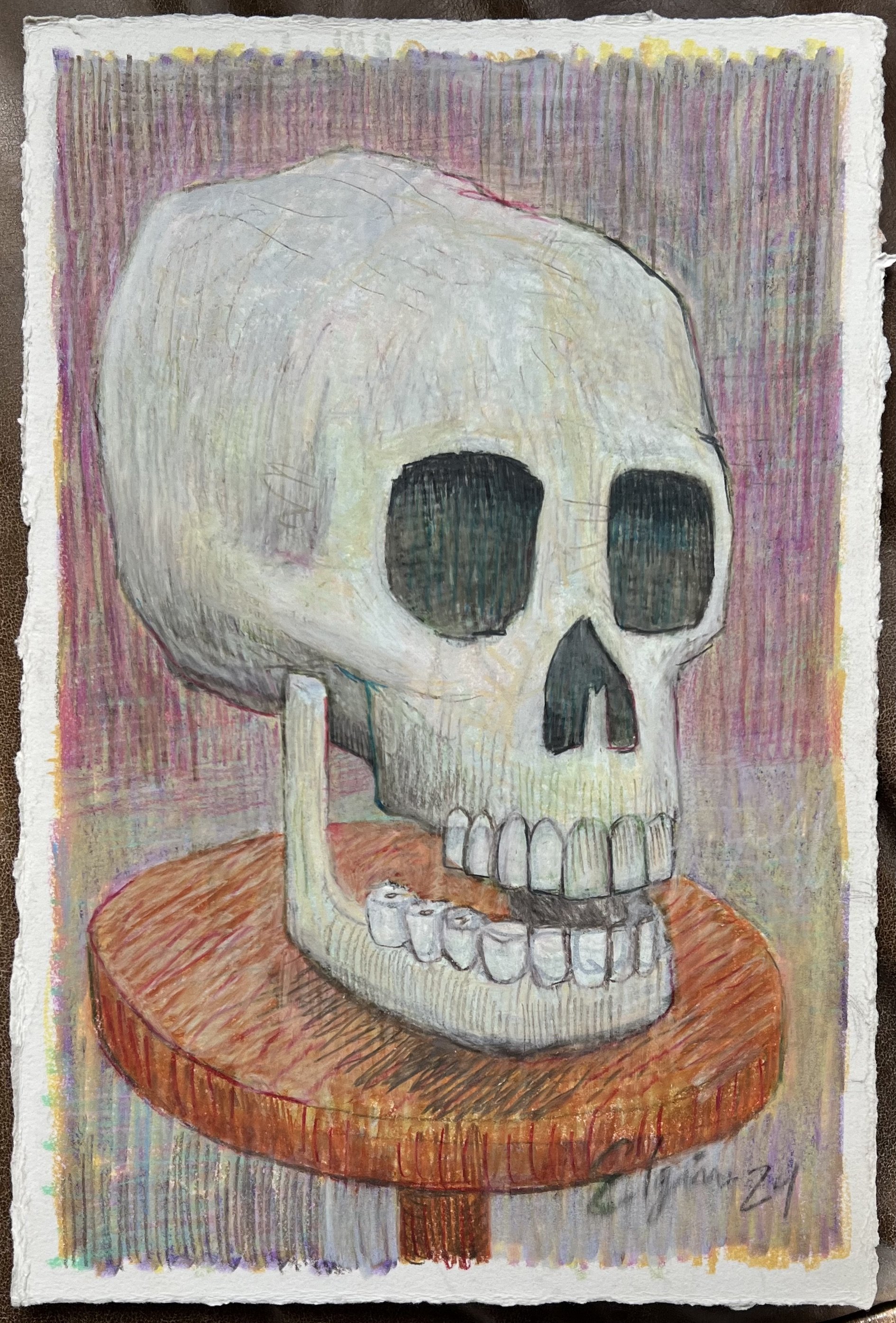 I really like this piece. This is a simple skull study from imagination. I think it works well. The photo here is not the best quality. In person the mark making really matures the work. My plans are to do a few more skulls like this in the future.
