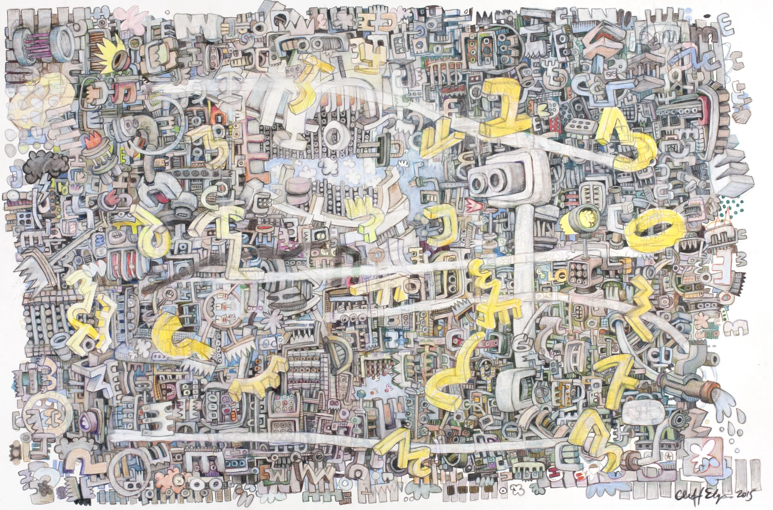 With these abstract drawings, my approach is to establish a few simple “laws” and then draw without much analysis, focusing mainly on how the elements relate to each other.