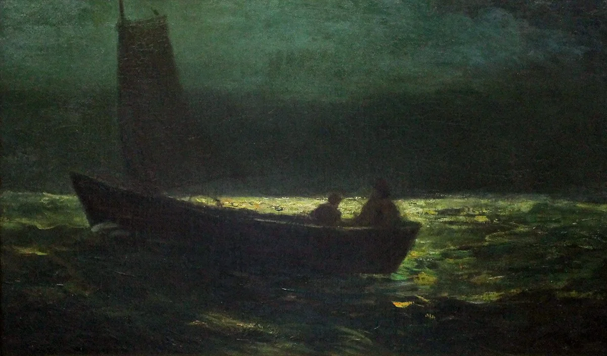 Albert Pinkham Ryder (1847–1917) was born in the whaling port of New Bedford. He is known for moody, atmospheric paintings that sit somewhere between landscape and vision. His work has had an influence on western figurative painters to this day. Mostly I think Ryder became a symbolic representative of a painter who allowed future generations of artists to more deeply investigate expressive mood, compression, and an almost claustrophobic sense of space.