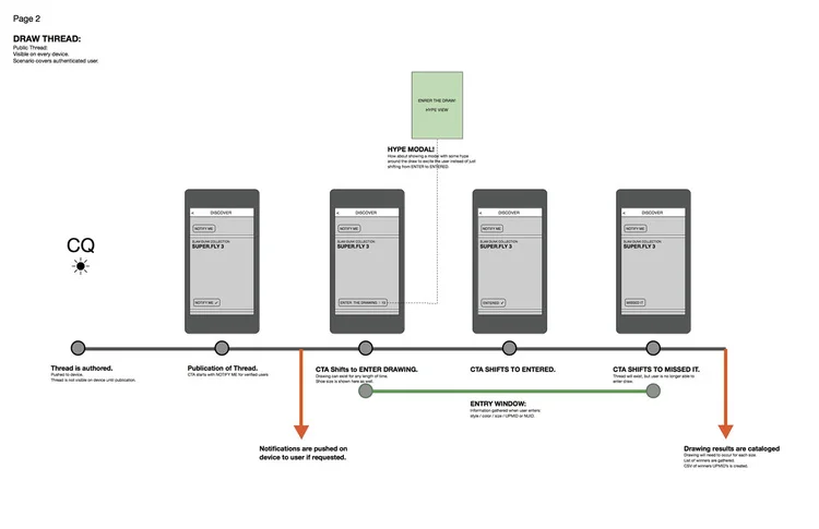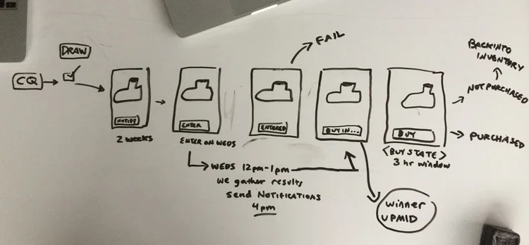 The objective here was to integrate a brick & mortar solution with the new SNKRS mobile app. We wanted to continue to feature the original model developed where consumers could press a 'buy now' button and instantly make a purchase. But we also were mandated to support this new alternative, 'THE DRAW'. In this alternative buying approach, a user could enter a lottery system.