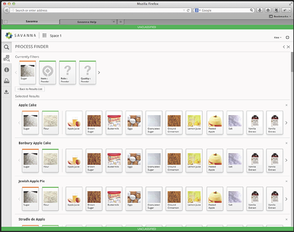 In the field, trace substances are found after an explosion. The Thetus tool-set allows analysts to identify the type of device used. The analyst enters the different trace elements & possible matches are displayed. The PROCESS FINDER was intended to exist in the browser unobtrusively. The analyst could find what they are looking for using the Process Finder and then see relevant information about that Process in the main view.