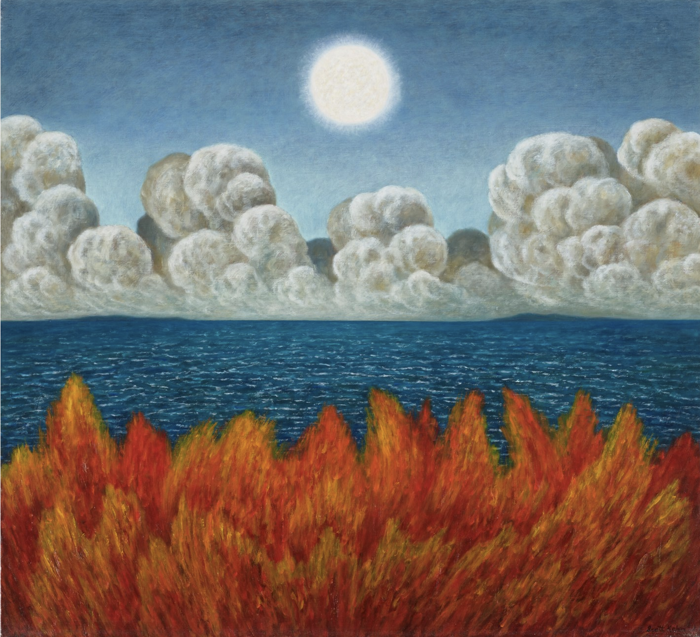Iām drawn to his work I think in part because of his attention to detail. In the pieces I like the most, I get the sense that he needs to think about every square inch of the canvas. There are a lot of artists out there who do a brilliant job of representing grass and trees with big bold swathy brushstrokes. Damn I wish I was one of them. The fact that Kahn needs to paint every branch on a tree or every blade of grass in a field is something I appreciate.